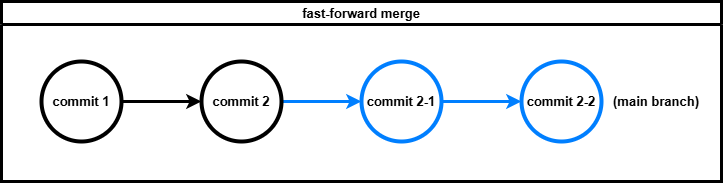 fast-forward merge 는 기준이 되는 브랜치에 신규 커밋이 없고 가져오고자 하는 브랜치에만 신규 커밋이 있을 경우 발생합니다.